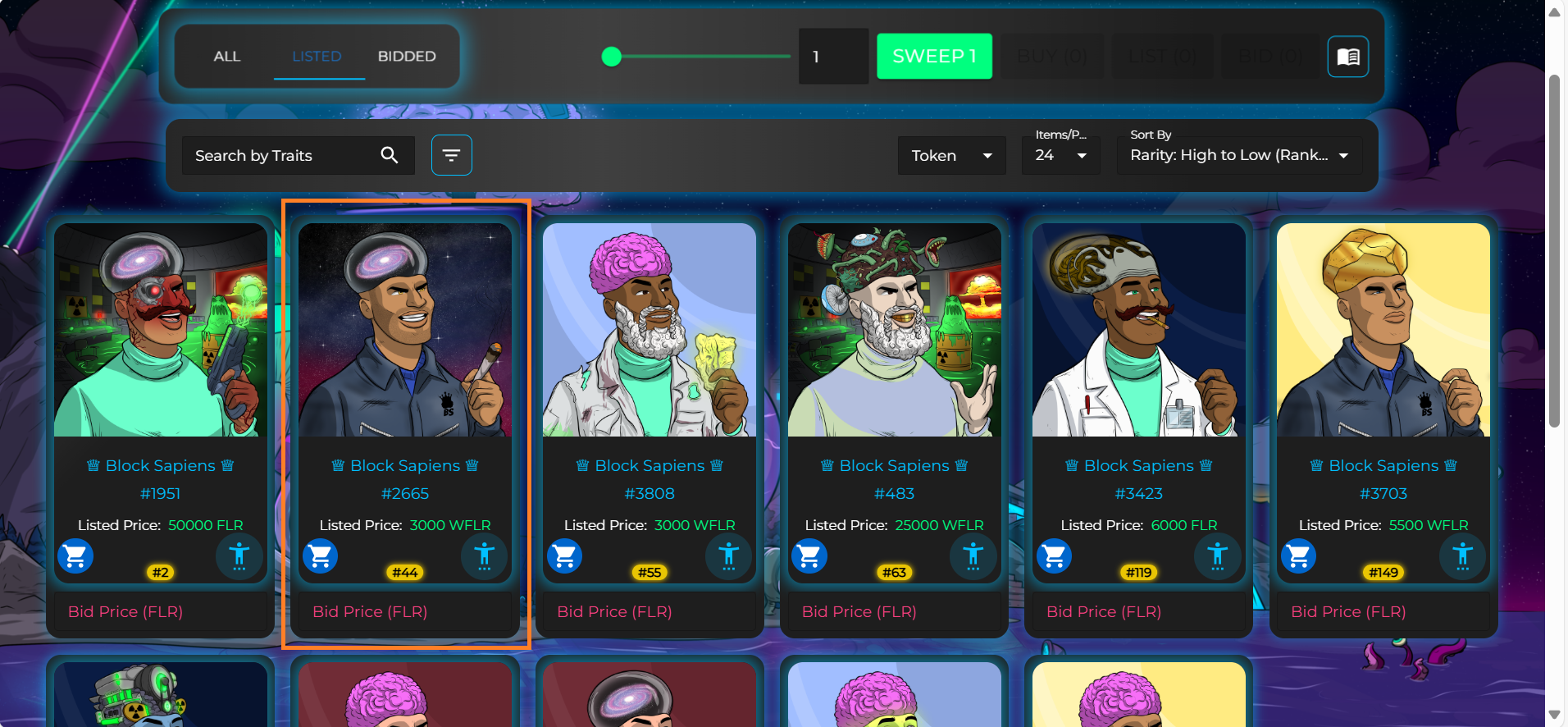 Have sufficient token balances for the NFTs you want to purchase, especially when buying items listed in different tokens (e.g., FLR, fXRP, or FOTON).